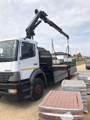 Перевозка манипулятором MERCEDES: бытовок, контейнеров, хозблоков, станков и других крупногабаритных грузов. Перевезем тротуарную плитку, блоки ФБС, газосиликат и прочие строительные материалы. Грузоподъёмность автомобиля - до 15 т., длина кузова - 6.80 м., манипулятор - 7-10 м., грузоподьемность к