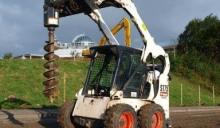 Аренда гидробура на мини-погрузчике Bobcat S220 и мини-экскаваторе Cat 305C. Диаметры шнеков: 300 мм и 400 мм, глубина бурения до 3 метров. Стоимость отверстия: 14 руб. (до 1.5 м), далее +2 руб. за каждые 0.5 м. Мин. заказ: 25 отверстий.