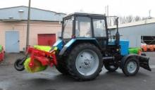 Аренда трактора МТЗ Беларусь 82.1 с коммунальным отвалом и подметальной щеткой для уборки территории. Подходит для расчистки снега, уборки грязи и листьев.