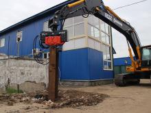 Профессиональный экипаж. Вибропогружатель Impulse VP310 благодаря своей конструкции может работать в ограниченном пространстве. Возможно комплектование объекта собственным шпунтом Ларсона. Вибропогружатель аренда Минск.
